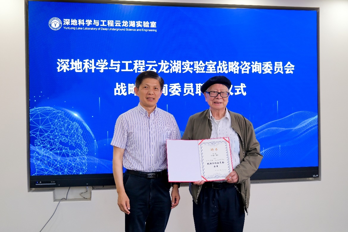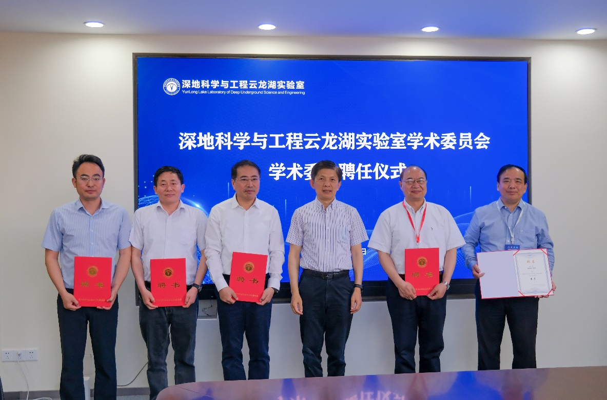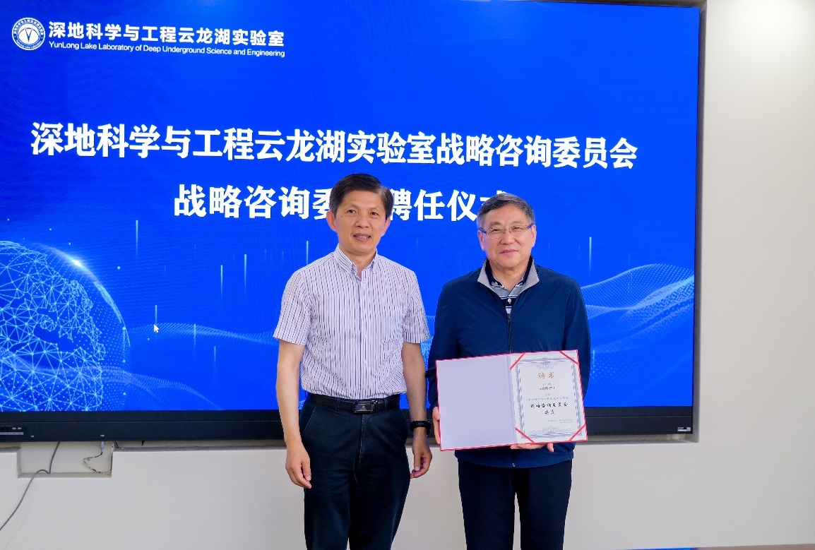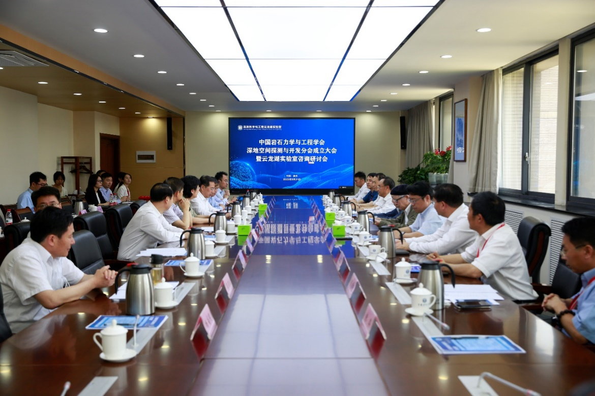 2023年5月21日上午,深地科学与工程云龙湖实验室在中国矿业大学南湖校区行健楼B501会议室召开咨询研讨会。中国工程院院士卢耀如、中国工程院院士张喜刚、中国工程院院士王复明、中国科学院院士彭建兵、中国工程院院士杜修力,云龙湖实验室理事长、中国矿业大学校长宋学锋,徐州市人民政府副市长龚维芳、徐州市科技局局长鲍斌、江苏省自然资源厅科技处副处长赵栋,邳州资规局局长王光辉,中国岩石力学与工程学会副理事长李晓,青岛理工大学副校长王在泉,军事科学院国防工程研究院主任贺永胜,中国地质调查局南京地质调查中心副总工程师姜月华,北京城建设计发展集团股份有限公司设计总监周书明,中国电建中南院新型储能设计研究院院长鄢军军、中国石油集团测井有限公司陈文辉等应邀参加会议。云龙湖实验室主任李晓昭,执行主任秦飞,副主任高存宝、赵超以及实验室部分专家学者等参加会议。