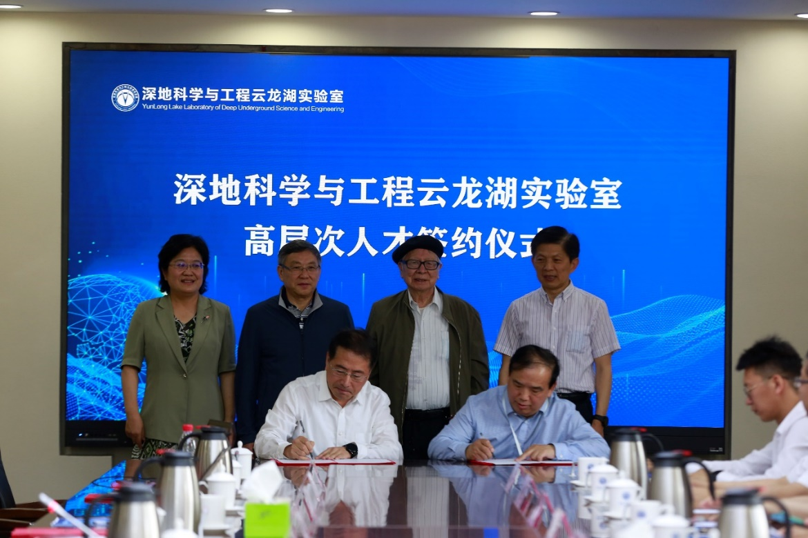 会上进行了云龙湖实验室学术委员会和战略咨询委员会聘任仪式。宋学锋代表云龙湖实验室向学术委员会副主任委员李晓昭、委员肖加奇、胡晓农、高存宝、王勃颁发聘书,向卢耀如、张喜刚两位院士颁发战略咨询委员聘书。卢耀如、张喜刚、宋学锋、龚维芳共同见证了云龙湖实验室与国家重大人才工程获得者胡晓农教授签订人才引进协议,与中国石油集团测井有限公司、中国电建集团中南勘测设计研究院签订战略合作协议。见签嘉宾与李晓昭、赵栋共同发布了由中国矿业大学与江苏省自然资源厅共同编制的《城市地下资源协同开发调查评价技术规范》。