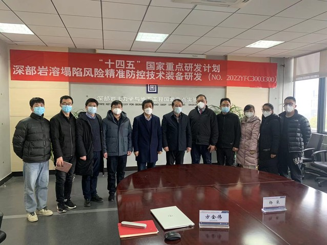 12月27日上午,由深地科学与工程云龙湖实验室主任、深部岩土力学与地下工程国家重点实验室主任李晓昭教授担任项目负责人的国家重点研发计划“重大自然灾害防控与公共安全”重点专项“深部岩溶塌陷风险精准防控技术装备研发(2022YFC3003300)”项目启动暨实施方案论证会以线上线下相结合方式召开。中国科学院院士、长安大学彭建兵教授,中国工程院院士、郑州大学王复明教授,中国工程院院士、深圳大学陈湘生教授,中国工程院院士、北京工业大学杜修力教授,科技部中国21世纪议程管理中心处长张贤、项目主管彭雪婷,教育部科技司项目主管赵梨利,中国矿业大学副校长卞正富教授,中国地质大学副校长唐辉明教授,国家自然灾害防治研究院院长徐锡伟研究员,中国地质调查局水文地质环境地质调查中心党委书记张发旺研究员,中国地调局南京中心副总工姜月华研究员,江苏省地质调查院院长朱锦旗研究员,中国地质科学院副总经济师张海波高级会计师,中国地质大学北京自然资源战略研究院副院长葛建平教授,山东大学许振浩教授等专家领导出席会议,项目骨干成员及实验室科研管理部门负责人等80余人参加会议。