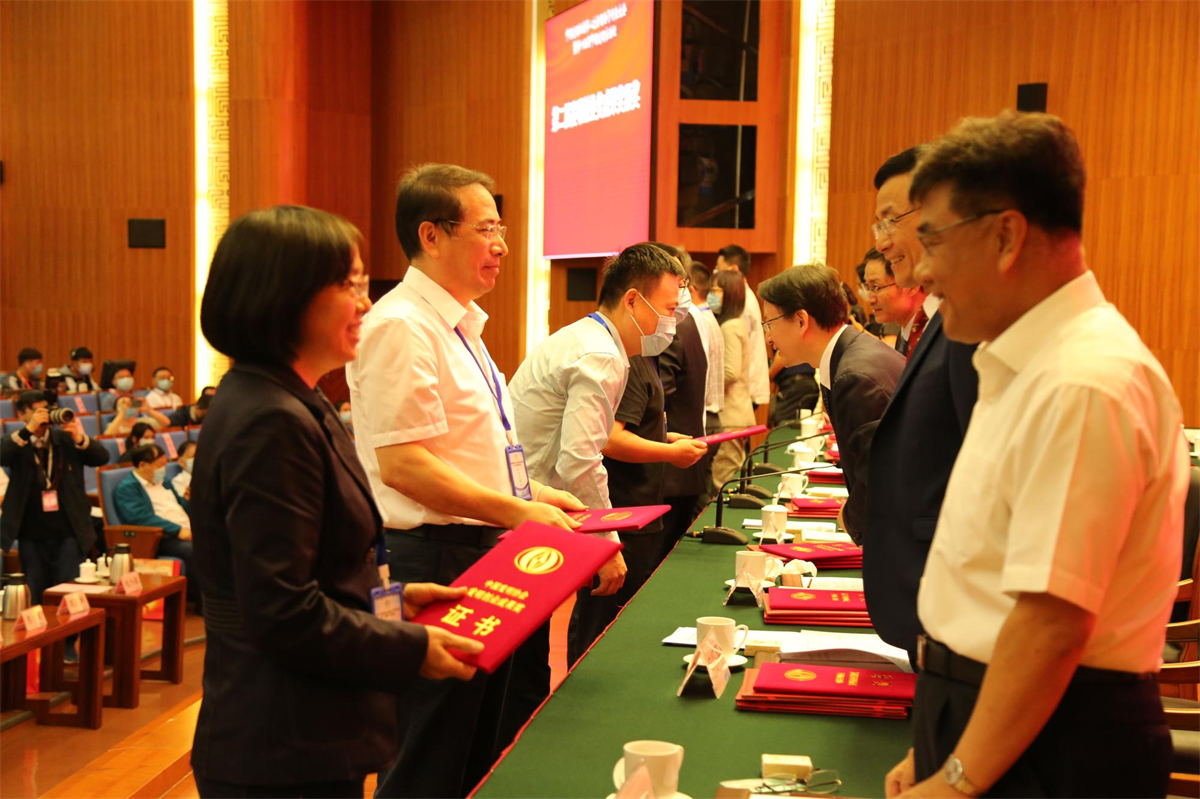 2021年9月27-28日,第二届发明创新创业奖成果奖颁奖典礼在北京中国科技会堂隆重举行,全国政协副主席、中国科协主席万钢出席会议并讲话。大会由中国发明协会第七届理事会理事长、原中国工程院常务副院长潘云鹤院士主持,科技部副部长李萌、国家知识产权局副局长周晖国分别致辞,共和国勋章获得者、诺贝尔医学奖得主屠呦呦发来贺词。